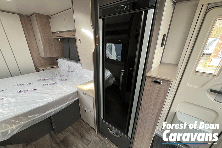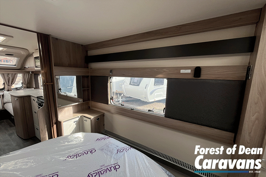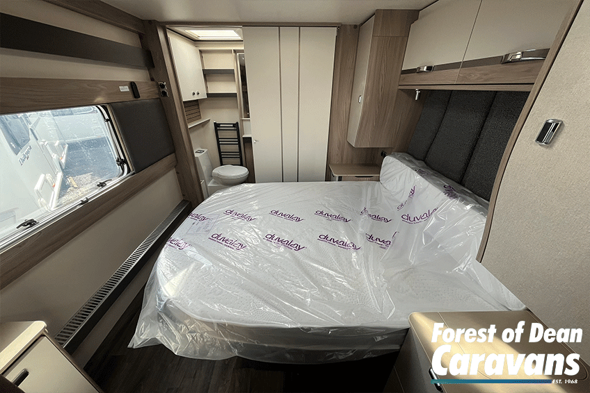 Towards the rear, the Conqueror 580 boasts a luxurious island bed with a high-quality mattress, offering excellent comfort for restful nights away. Surrounding wardrobes and storage compartments make it easy to keep everything organised during longer trips.