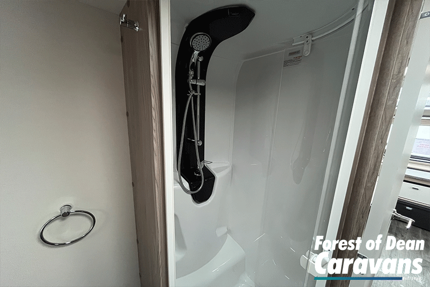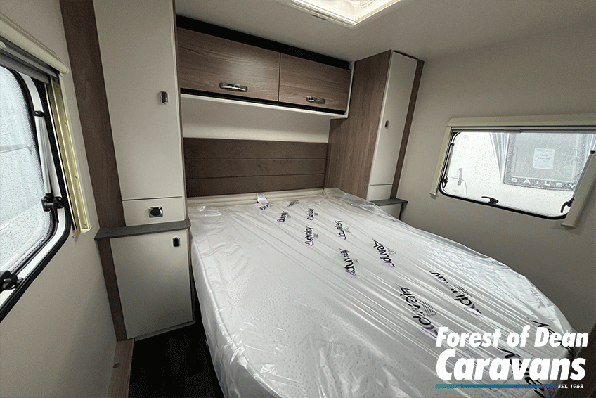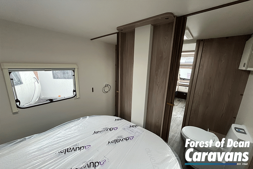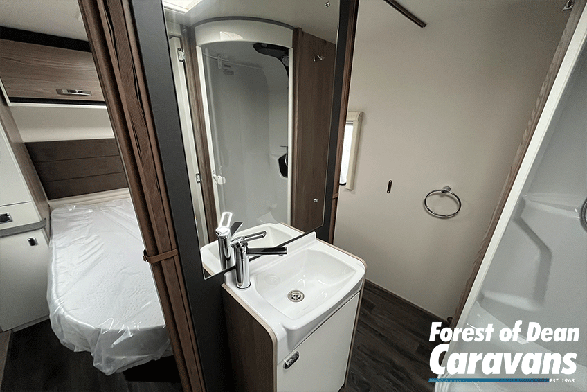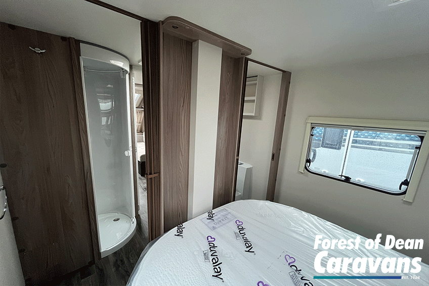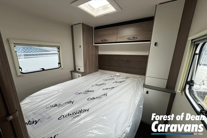 Enjoy a full sized shower, back-lit vanity unit, separate cassette toilet and ample space in the central washroom. The highlight of the 4EB layout is the luxurious rear end bedroom. The fixed island bed with a comfortable Duvalay mattress guarantees a restful night and lifts for additional storage.